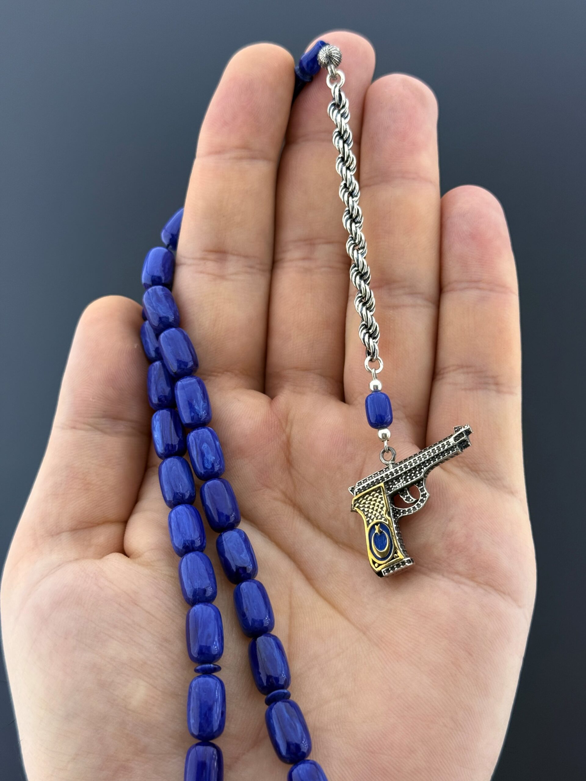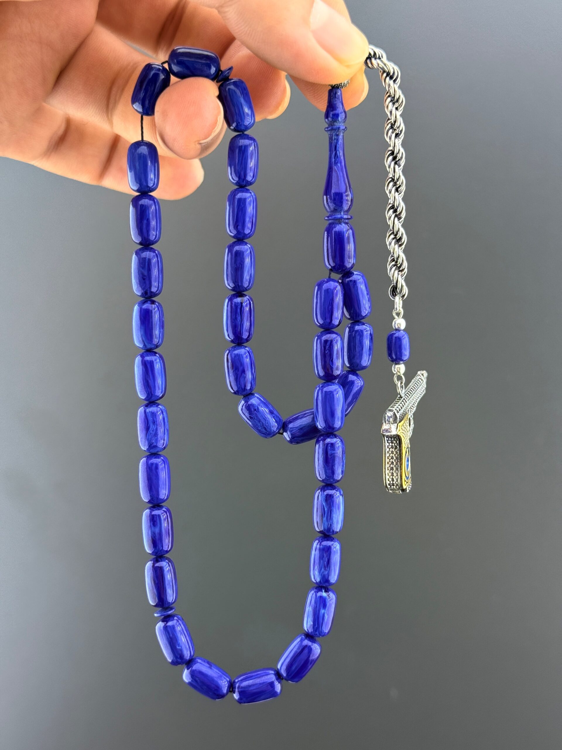 💢KATALİN TESBİH – MAVİ KAPSÜL KESİM💢 7x12 mm ölçülerindeki kapsül kesim taneleriyle dikkat çeken bu katalin tesbih, mavi rengin huzur veren tonlarını zarif bir tasarımla birleştiriyor. 10,5 gr 925 ayar gümüş püskül, tesbihin hem değerini hem de estetik görünümünü güçlendiriyor. Elde akıcı bir kullanım sunan bu parça, koleksiyonlarda özel bir yer edinebilecek, günlük kullanımda ise şıklığıyla fark yaratacak bir seçimdir. 📿 Tesbih Malzemesi: Katalin 📿 Tane Ölçüsü: 7x12 mm 📿 Tane Tipi: Kapsül Kesim 📿 Püskül: 10,5 gr 925 Ayar Gümüş Püskül