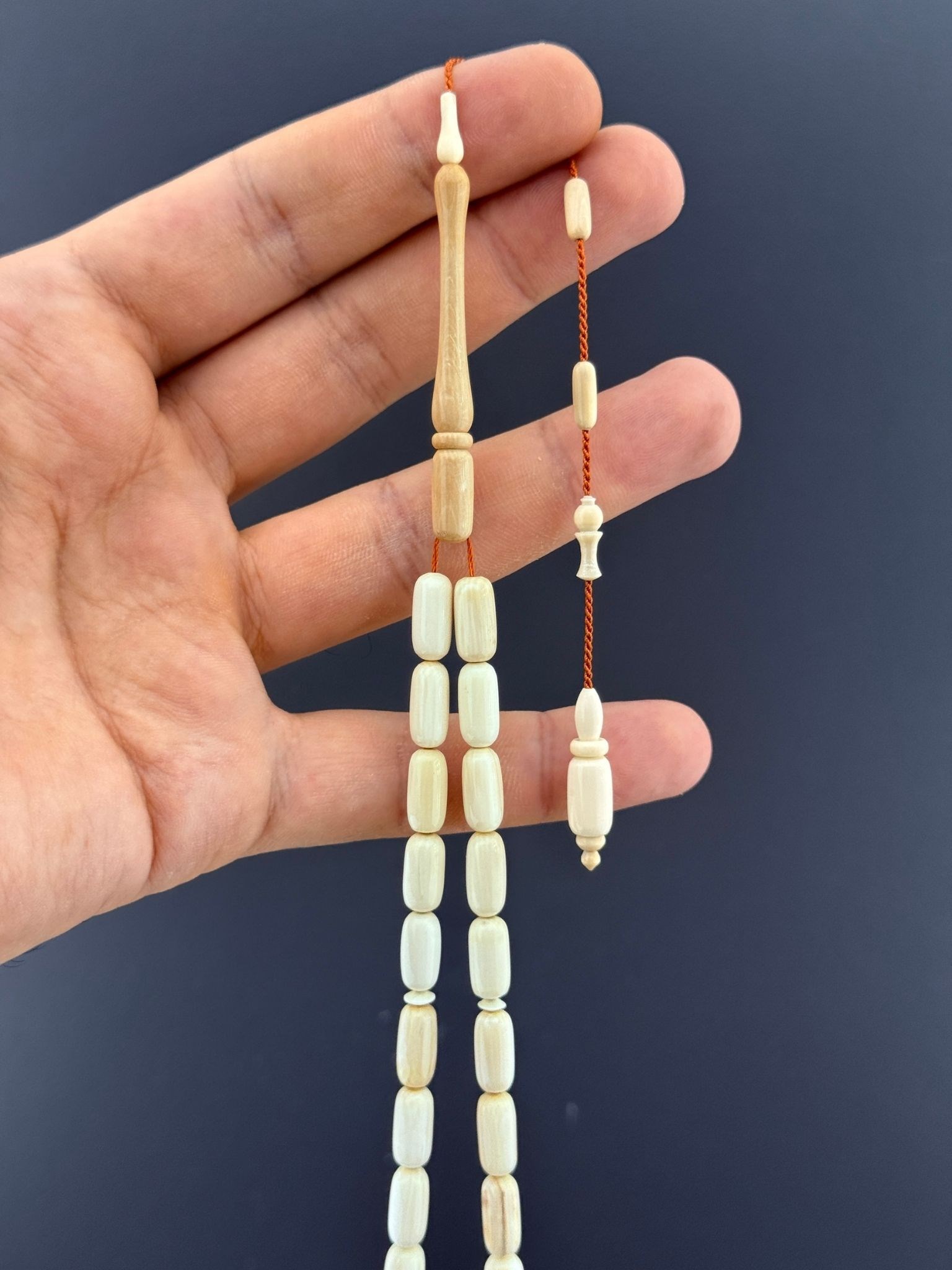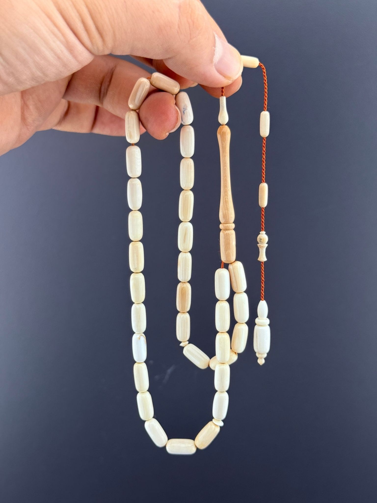 💢HARUN OCAKBAŞI USTA İŞÇİKLİ 18,4 GR. MAMUT DİŞİ TESBİH – KREM💢 5,75x12,5mm ölçülerinde kapsül kesim tanelerden oluşan bu mamut dişi tesbih, doğallığı ve zarafeti bir araya getiriyor. Krem rengin sade ve asil görünümü, ustalıkla işlenmiş detaylarla birleşerek koleksiyonlara değer katıyor. Hem elde hoş bir his uyandırır hem de nadir yapısı ile farklılığını ortaya koyar. 📿 Tesbih Malzemesi: Mamut Dişi 📿 Tane Ölçüsü: 5,75x12,5mm 📿 Tane Tipi: Kapsül Kesim 📿 Püskül: Sistem Püskül