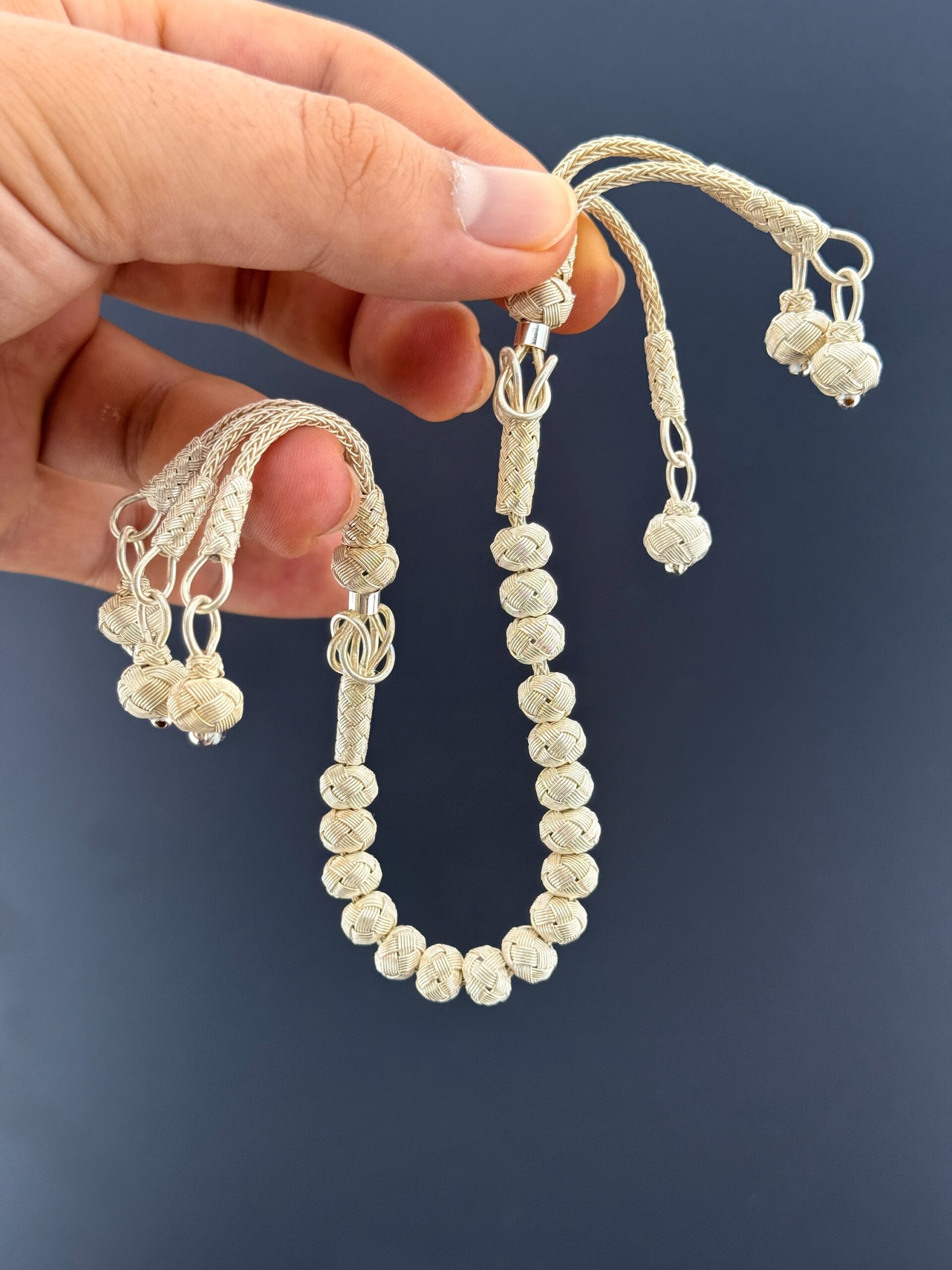💢30 GR GÜMÜŞ KAZAS ZAZA – BEYAZ KREM TONLAR💢 30 gram ağırlığındaki bu gümüş kazas zaz, beyaz ve krem tonlarının zarif birleşimiyle hazırlanmıştır. El işçiliğiyle şekillendirilen detaylar, hem estetik bir görünüm hem de dayanıklı bir yapı sunar. Tesbihlerde şıklığı ve asaletin simgesi olan bu model, özellikle özel koleksiyonlara değer katan nadir parçalardandır. Gümüşün parlak dokusu ve krem tonlarının uyumu, klasik zaza tarzını modern bir yorumla buluşturur. 📿 Malzeme: 30 gr 925 Ayar Gümüş Kazas 📿 Model: Zaza