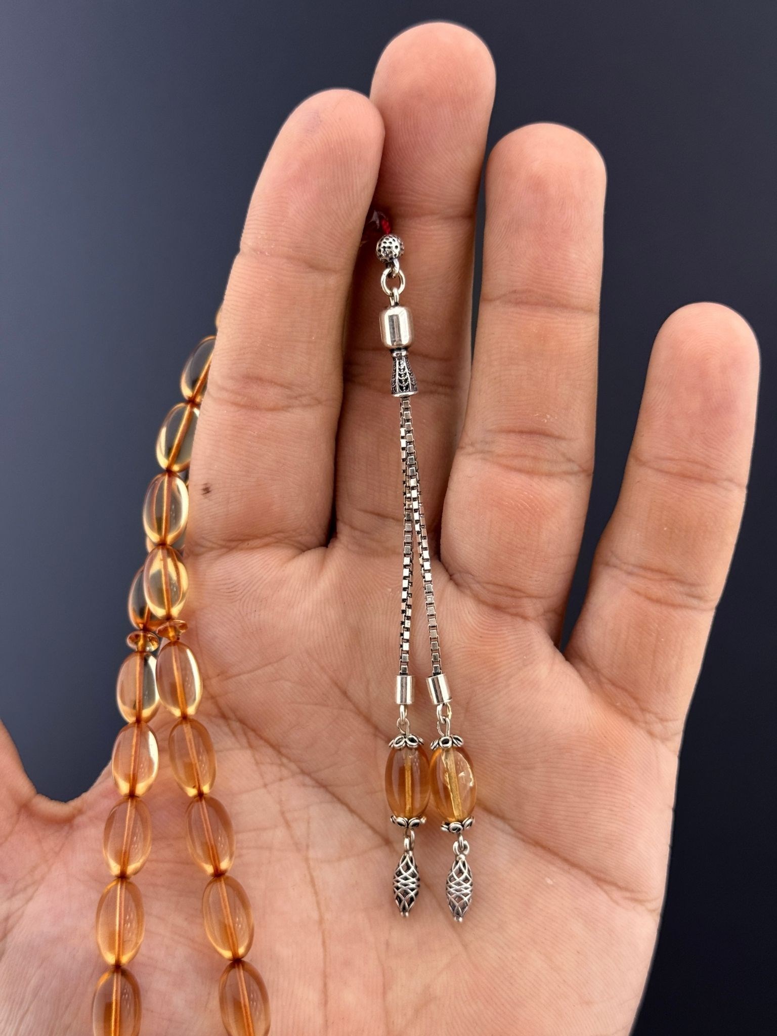 💢4,4 GR. 925 AYAR GÜMÜŞ PÜSKÜLLÜ MEHMET EMİN CEYLAN BLOK ZAR TESBİH – SARI💢 Mehmet Emin Ceylan’ın özenli işçiliğiyle hazırlanmış bu blok zar tesbih, 7x12mm ölçülerinde badem kesim taneleriyle dikkat çekiyor. Sade ve zarif tasarımını tamamlayan sarı rengi, tesbihin koleksiyonluk değerini artırırken, 4,4 gramlık 925 ayar gümüş püskülü ise estetik ve değerli bir dokunuş katıyor. Koleksiyoncuların ve şıklığına önem veren tesbih tutkunlarının ilgisini çekecek özel bir parçadır. 📿 Tesbih Malzemesi: Blok Zar 📿 Tane Ölçüsü: 7x12mm 📿 Tane Tipi: Badem Kesim 📿 Püskül: 4,4 gr. 925 Ayar Gümüş Püskül