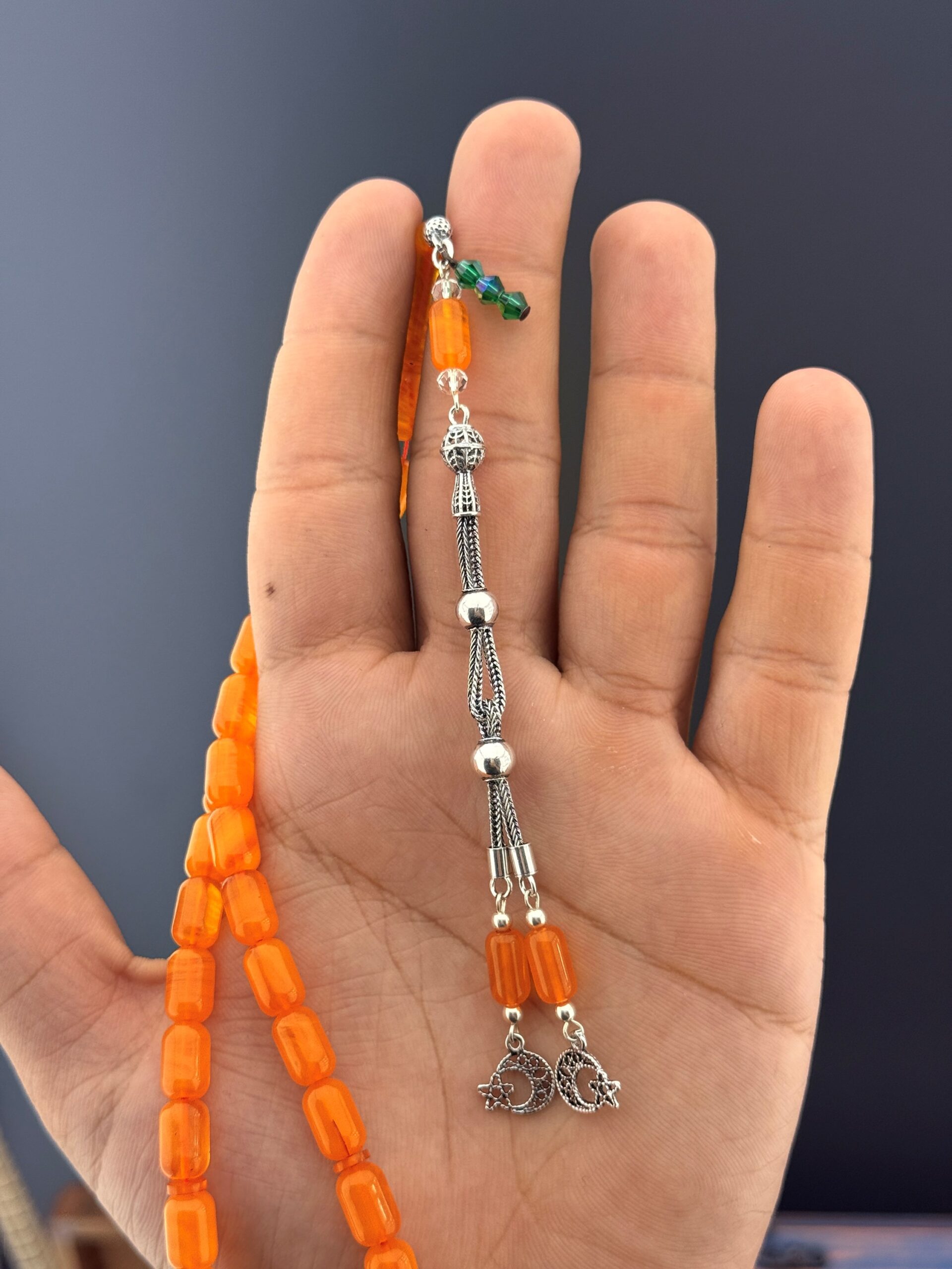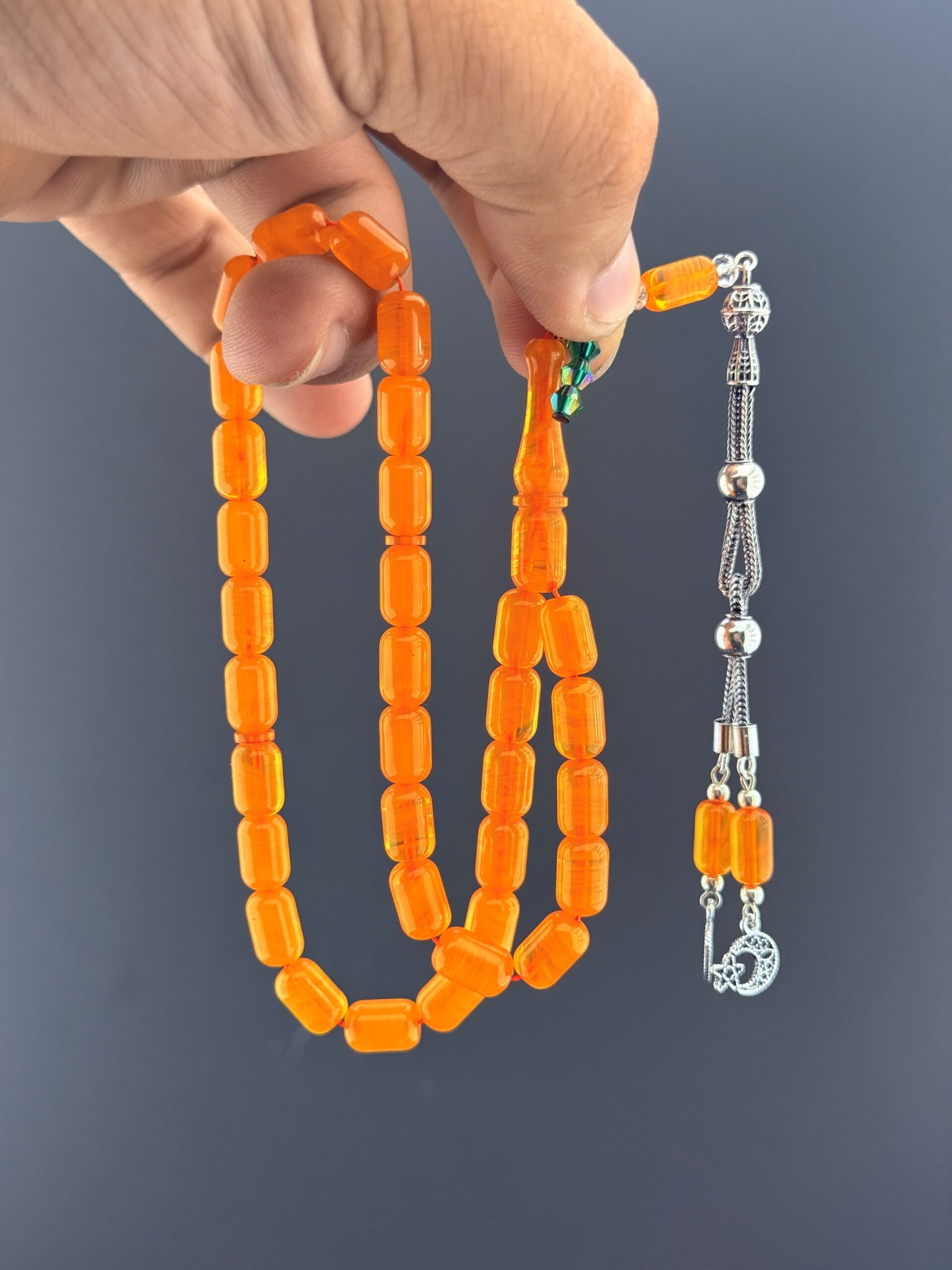 💢SIKMA KEHRİBAR TESBİH – TURUNCU KAPSÜL KESİM💢 Turuncunun canlı enerjisini yansıtan bu sıkma kehribar tesbih, şıklığı ve zarif tasarımıyla dikkat çekiyor. 6,75x10,50 mm ölçülerindeki kapsül kesim taneler elde akıcı bir kullanım sağlarken, 5,2 gram 925 ayar gümüş püskül tesbihin değerini artırıyor. Koleksiyonlarda özel bir yere sahip olabilecek bu parça, aynı zamanda günlük kullanım için de ideal bir tercihtir. 📿 Tesbih Malzemesi: Sıkma Kehribar 📿 Tane Ölçüsü: 6,75x10,50 mm 📿 Tane Tipi: Kapsül Kesim 📿 Püskül: 5,2 gr 925 Ayar Gümüş Püskül