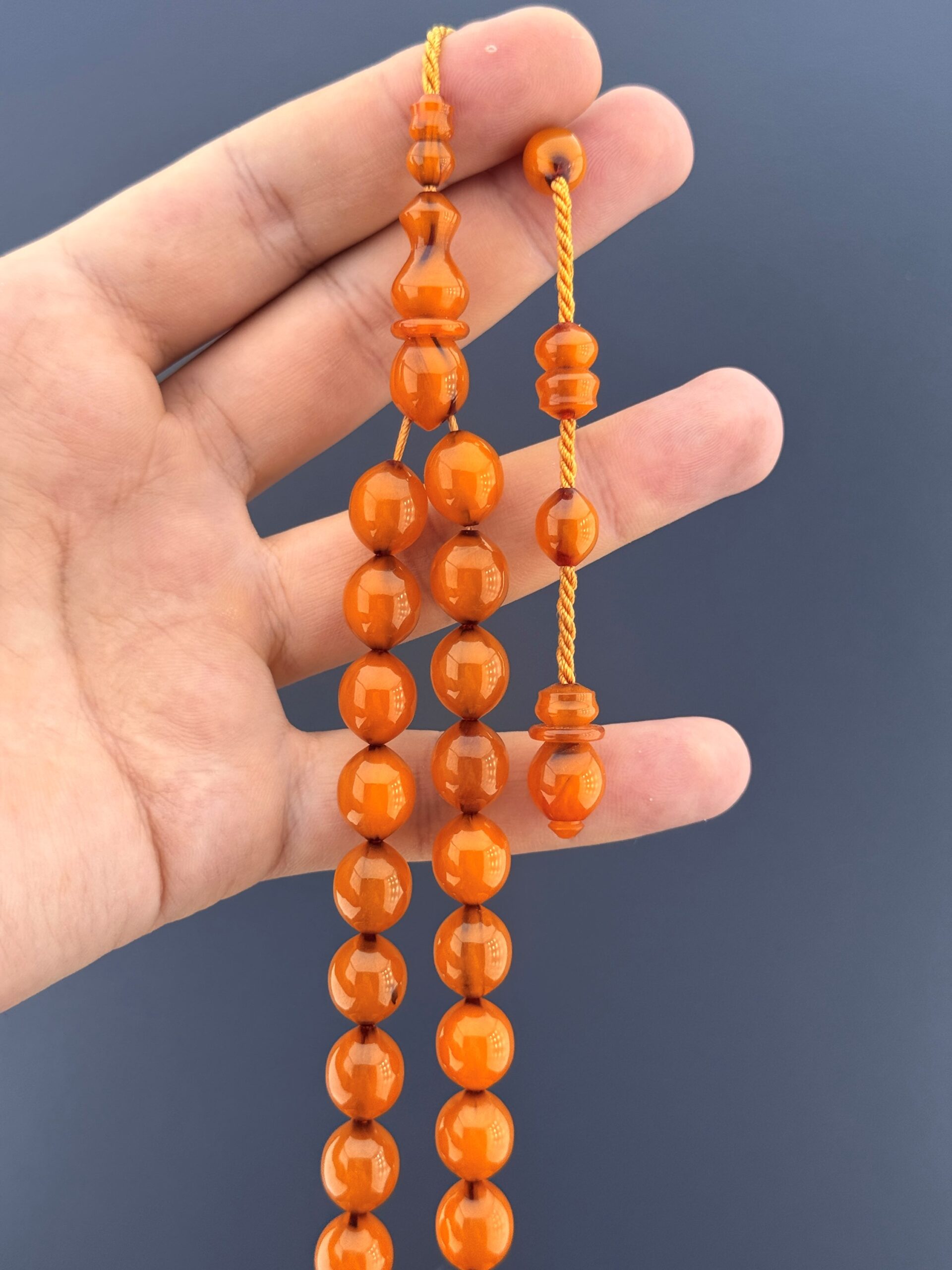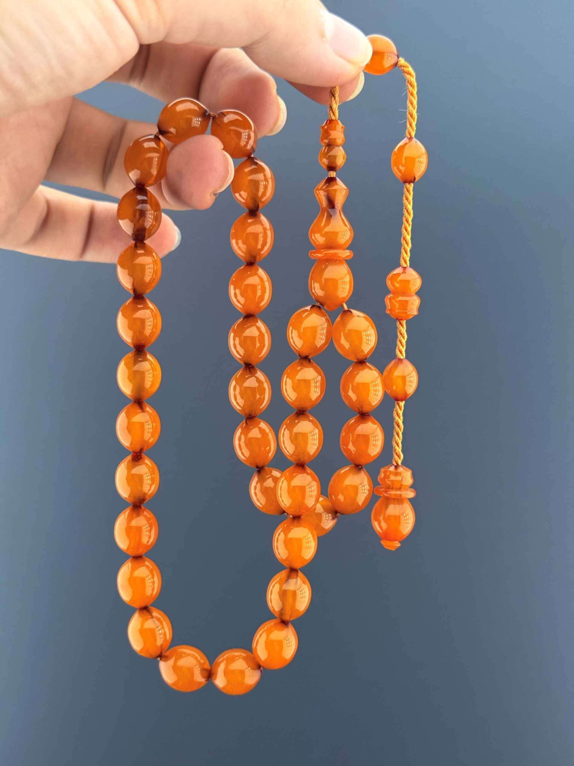 💢SİNAN BÜLBÜL USTA İŞÇİLİKLİ 40 GR OSMANLI SIKMA – AĞIR VE PRESTİJLİ BİR DURUŞ💢 Turuncunun canlı enerjisini taşıyan bu büyük ölçülü Osmanlı sıkma tesbih, Sinan Bülbül’ün güçlü ustalığıyla birleşiyor. Beyzi kesim formu elde dolgun bir hissiyat verirken, malzemenin yoğun yapısı koleksiyon değeri taşıyan bir ağırlık sunar. Gösterişli ama zarif bir modeldir. 📿 Tesbih Malzemesi: 40 gr. Osmanlı Sıkma 📿 Tane Ölçüsü: 11x13 📿 Tane Tipi: Beyzi Kesim 📿 Püskül: Sistem