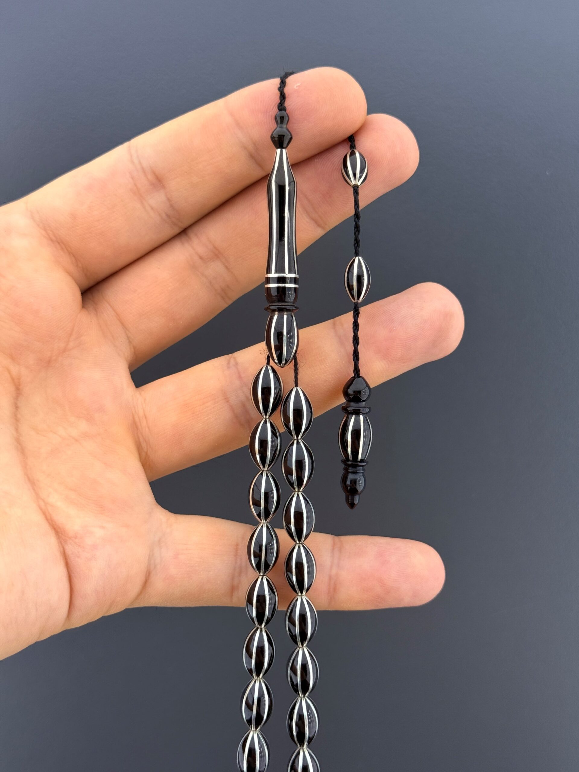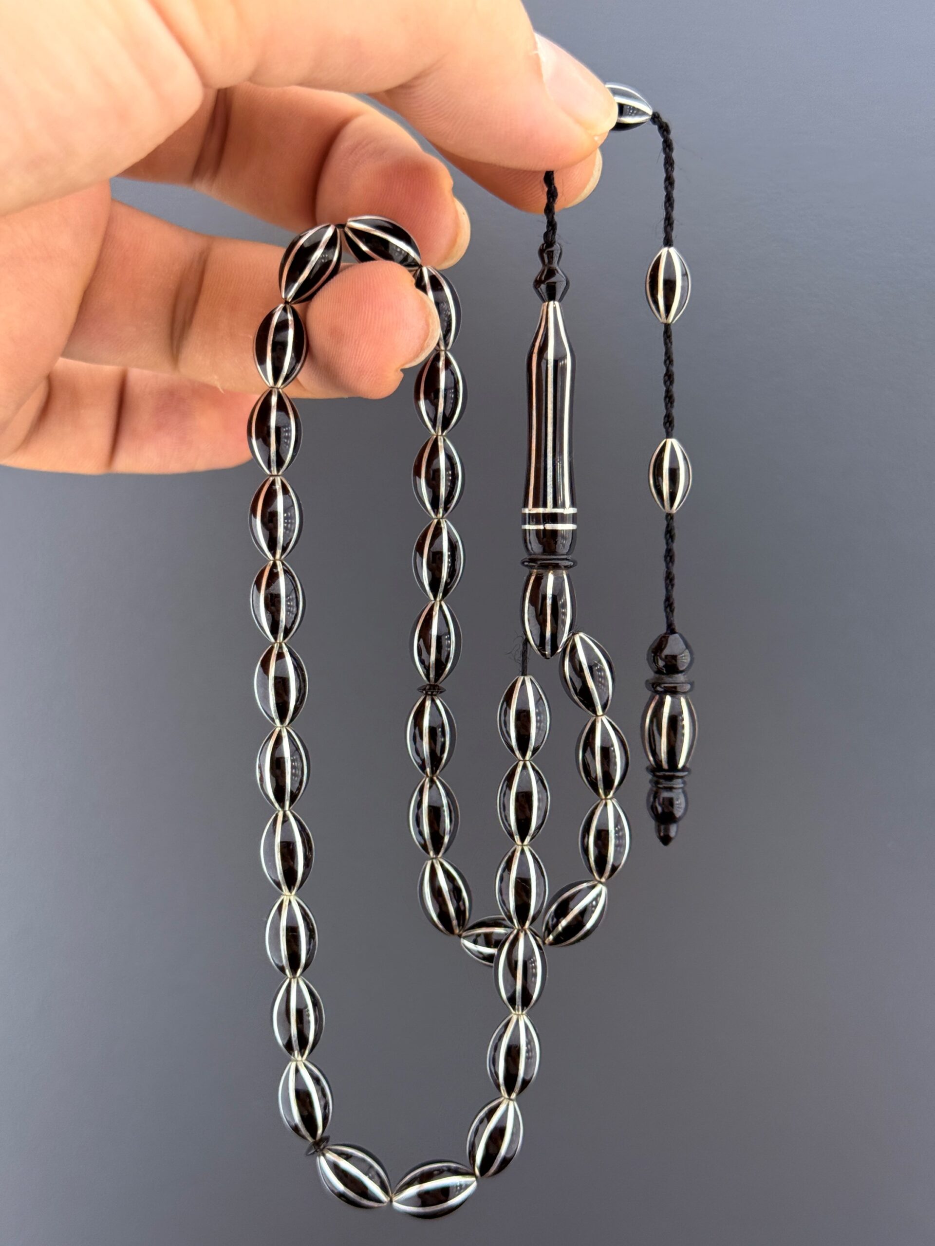 💢SİNAN AĞIRMAN & YILDIRIM ACAR USTA İŞÇİLİKLİ ERZURUM OLTUSU – BEYZİ FORMDA ZARİF DOKUNUŞ💢 Gümüş–siyah geçişleriyle zarif bir görünüme sahip olan bu beyzî kesim Erzurum oltusu, iki ustanın ortak emeğini taşıyor. Akıcı formu elde rahat bir kullanım sunarken, gümüş işlemeli yapısı tesbihin değerini artırıyor. 📿 Tesbih Malzemesi: Erzurum Oltusu 📿 Tane Ölçüsü: 7,25x11,5 📿 Tane Tipi: Beyzi 📿 Püskül: Sistem